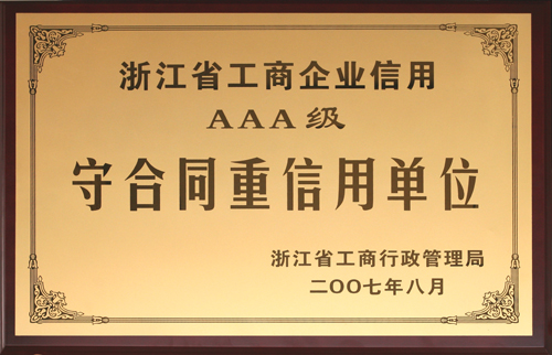 浙江省工商企業(yè)信用AAA級守合同重信用單位