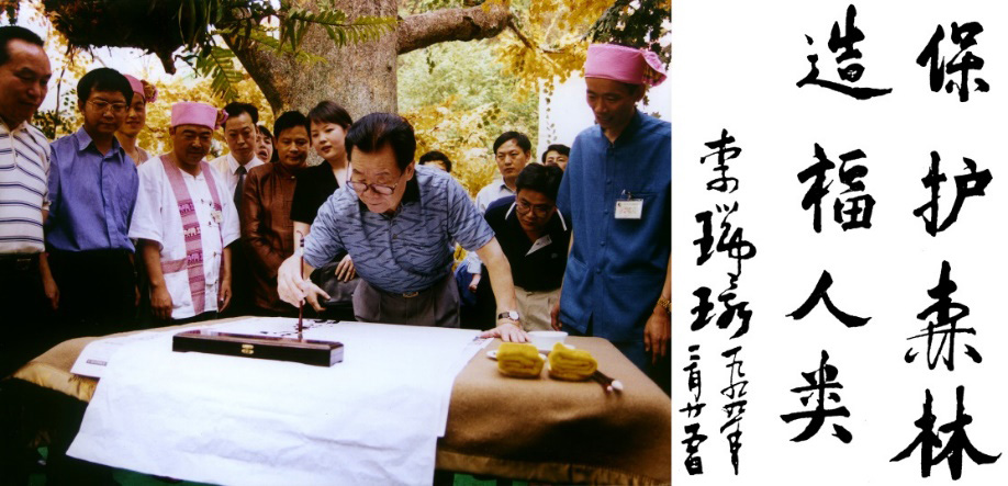 1999年3月,時任中共中央政治局常委、全國政協(xié)主席李瑞環(huán)到西雙版納森林公園參觀視察,并欣然題詞:“保護(hù)森林,造福人類”。