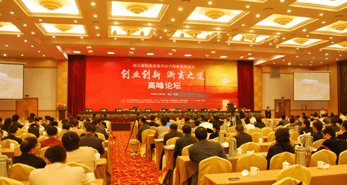 浙江省政府新聞辦、省質(zhì)量技術(shù)監(jiān)督局舉辦的“創(chuàng)業(yè)創(chuàng)新 浙商之道”高峰論壇于10月27日在杭州舉行。來(lái)自浙江省內(nèi)外的浙商代表、經(jīng)濟(jì)學(xué)界專(zhuān)家和各級(jí)政府官員等近千人與會(huì)。省委常委、宣傳部長(zhǎng)黃坤明講話,副省長(zhǎng)王建滿(mǎn)出席論壇。金洲集團(tuán)董事長(zhǎng)俞錦方在論壇演講發(fā)言提出:轉(zhuǎn)型是浙商發(fā)展的必由之路。