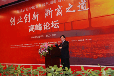 在會(huì)上演講發(fā)言的還有華立集團(tuán)董事局主席汪力成,娃哈哈集團(tuán)董事長(zhǎng)宗慶后,宋城集團(tuán)董事長(zhǎng)黃巧靈,精功集團(tuán)董事長(zhǎng)金良順等全國(guó)知名的浙商企業(yè)家代表。