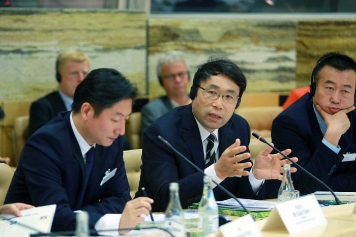 俞錦方董事長(zhǎng)(中)圓桌交流發(fā)言