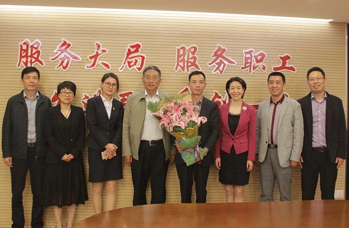 浙江省總工會副主席張衛(wèi)華與陳云明(右二)勞模代表合照