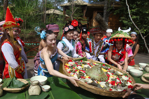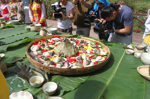 參加本屆普洱太陽河國家公園舉辦的少數(shù)民族共有26個,其中有25個是少數(shù)民族,都是云南特有的少數(shù)民族,普洱當?shù)氐纳贁?shù)民族也在內,分別是彝族、佤族、拉祜族、哈尼族、傣族。除了少數(shù)民族還有1個漢族,共組成26種民族齊聚國家公園參加這次“少數(shù)民族粽子節(jié)”。這次活動不僅有來自各個地方的不同民族的特色食材,而且有的民族在端午節(jié)是沒有包粽子的習俗,為了讓更多人了解自己民族的特色食材,這些民族把食材融入到粽子里,供大家品嘗、投票。最后由這26個民族齊心協(xié)力包出了一個重達5.78公斤的“民族團結粽”,堪稱“云南第一粽”。