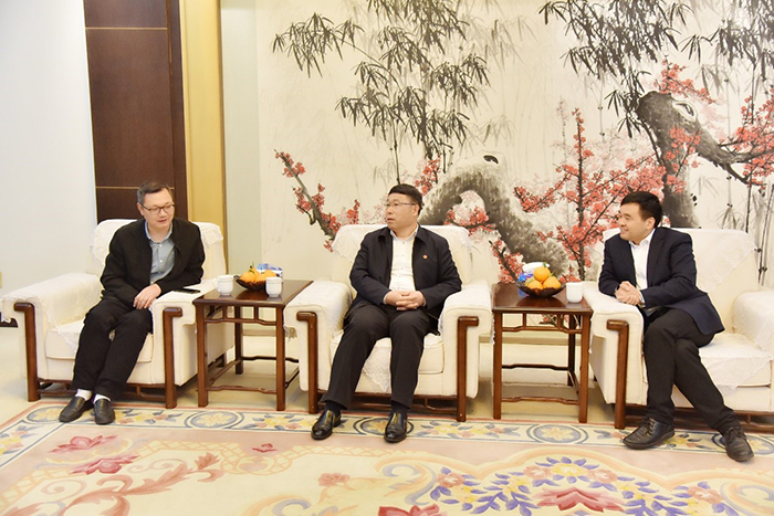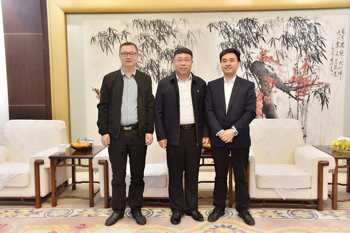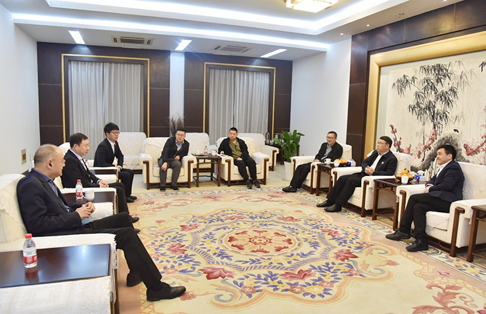 俞錦方董事長熱情接待余勝奎書記和沈明亮主任一行
